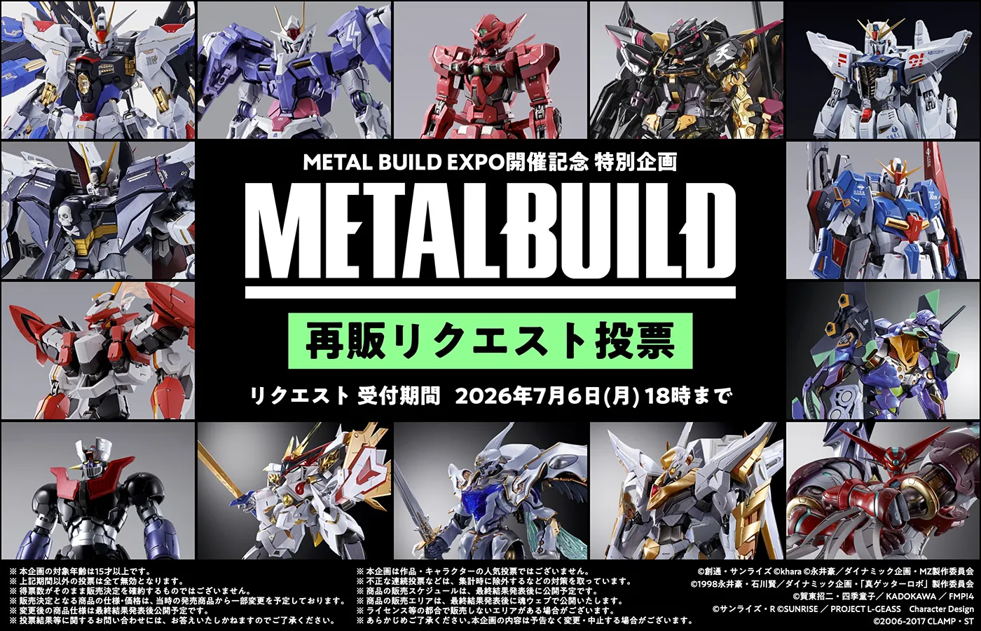 「METAL BUILD EXPO」の開催を記念し、METAL BUILDの再販リクエスト投票を実施いたします。