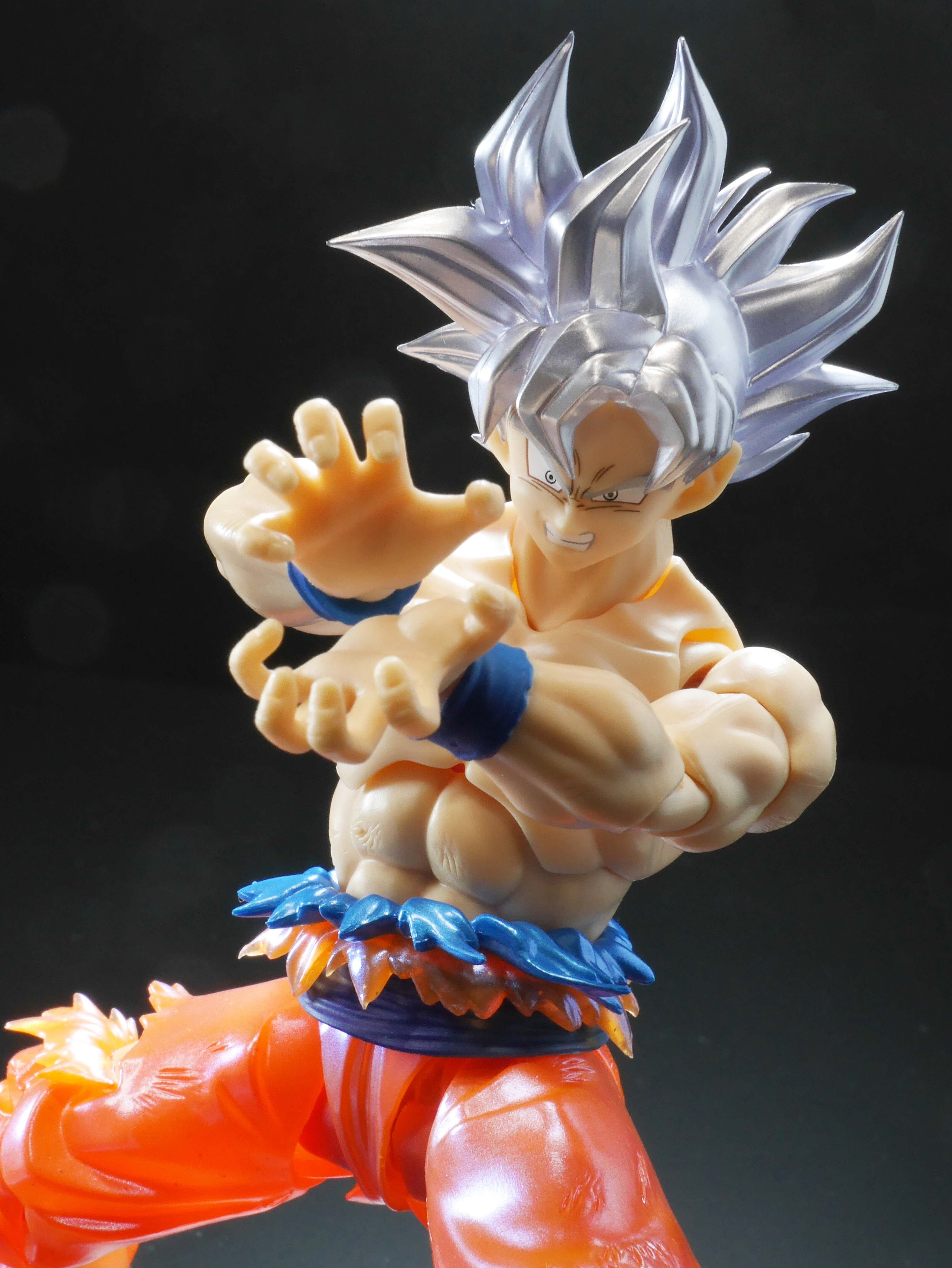 頭部パーツはクリア成形にパール彩色することで、「身勝手の極意」の特徴であるオーラと共に輝く銀色の髪を再現!